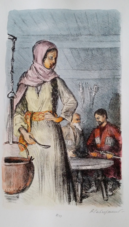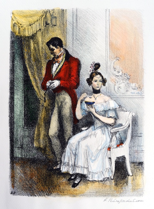От картин на стенах и альбома с фотографиями с мы перебрались к рассматриванию эстампов: "Кавказские поэмы", "Маскарад", "Золушка".