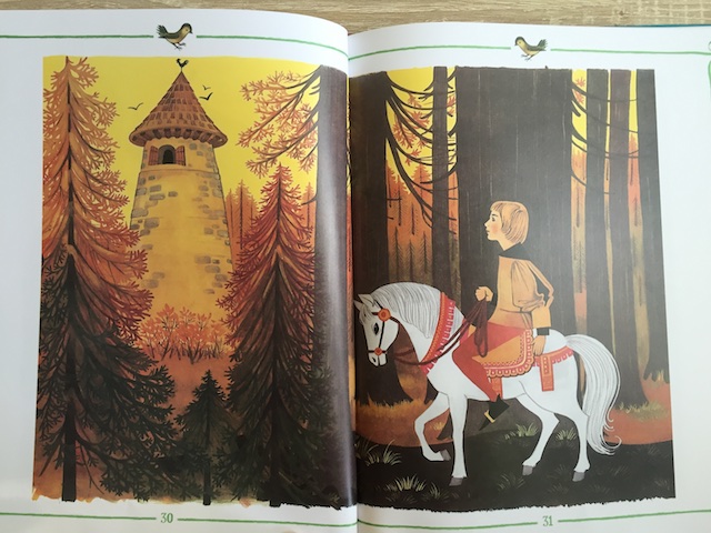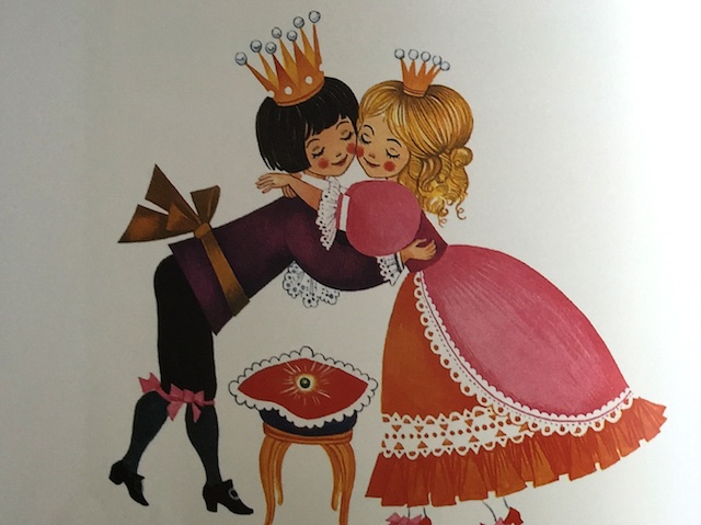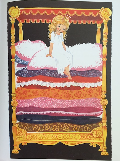 Единственная сказка, рисунки к которой меня не впечатлили - "Принцесса на горошине". Может, просто мы с Настей обе уже не представляем эту историю иначе, как в иллюстрациях А. Ломаева. Именно здесь все уж слишком конфетно-карамельно, до приторности. И принц чересчур на девочку похож.