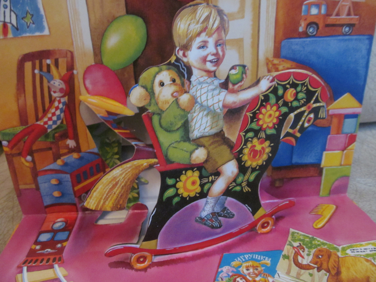 Очень красивая книга-панорама. В сборник входят стихотворения "Бычок", "Мишка", "Самолет", "Лошадка", "Мячик", "Зайка".