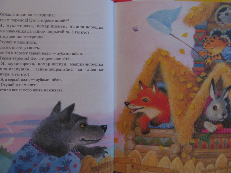 Этой книгой довольна. Хотя некоторые сказки здесь в непривычном варианте. Так, например, в сказке "Козлятки и волк" козлята так и не отворили дверь волку, и тот ушел несолоно хлебавши. А мама-коза пришла и похвалила своих деток за то, что они ее послушались)