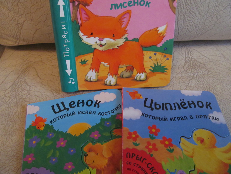 Есть в нашей библиотеке и любимые книжки-малышки. Это "Веселый лисенок", "Щенок, который искал косточку" и "Цыпленок, который играл в прятки" (издательства Мозаика-синтез).