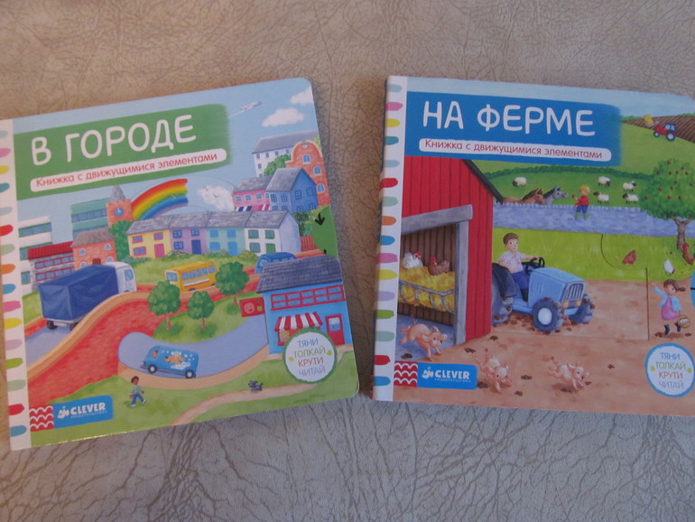 О книжках "В городе" и "На ферме" из серии "Тяни, толкай, крути, читай" издательства Clever тут