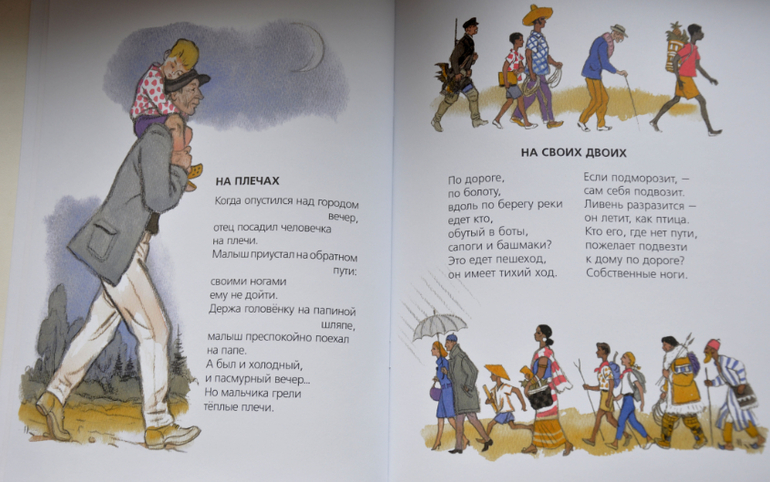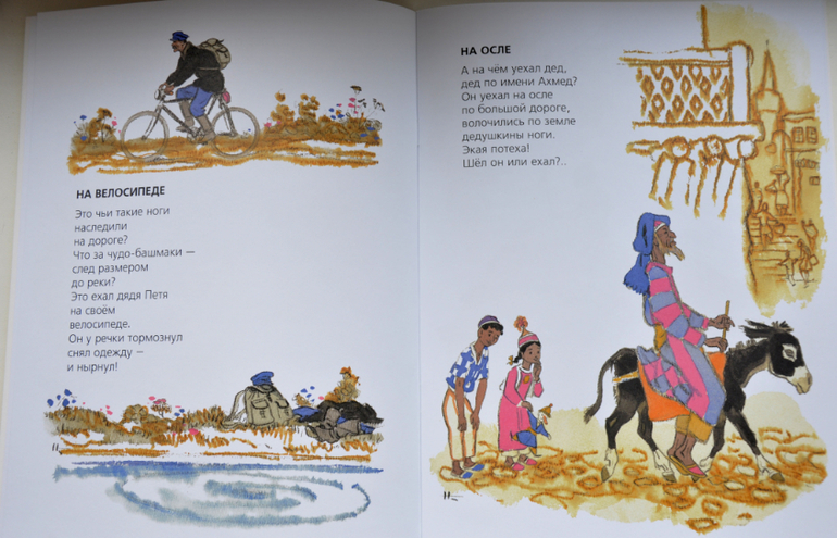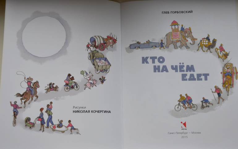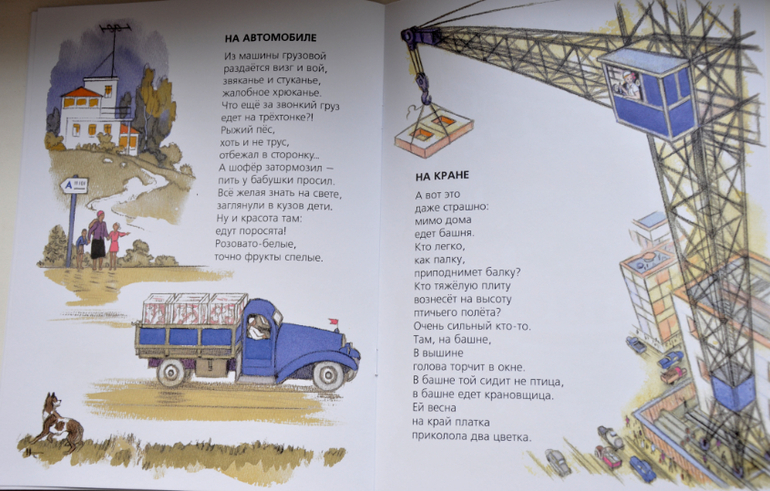"Кто на чем едет" - такой замечательный сборник всех тех), кто хоть на чем-то едет - на слоне, на листе, на велосипеде, на машине, на кране, на своих двоих, на земле..