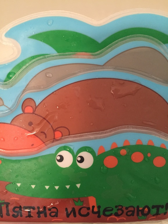 Ура! Ура! Время этой книженции пришло!!! Год назад это была первая поставка книг с Озона. Выбирала наобум, без рекомендаций, без анализа: сколько же литературного хлама я получила! Но эта книжка вызвала у меня восторг при первом "прочтении". Каждый раз пищу от нее до сих пор. Смысл, как вы видите, прост: животные Африки в кляксах-пятнах, при намокании грязь смывается и звери - чистые, собственно каким и должен оказаться повелитель ванны.