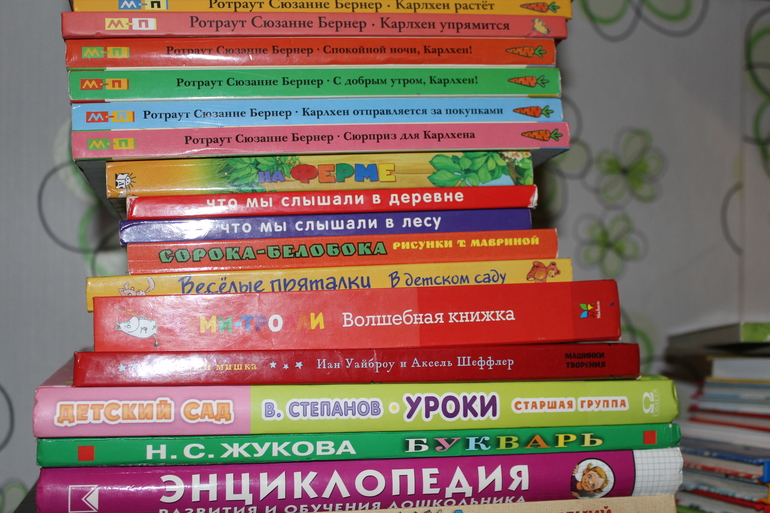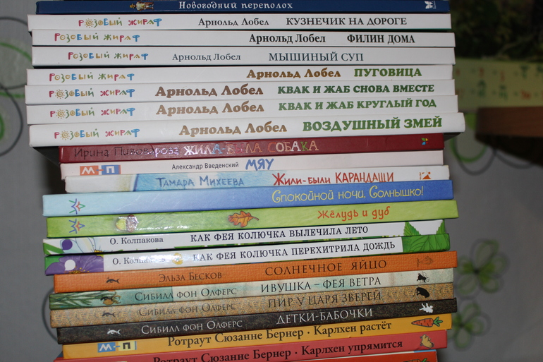 Ой, мамочки! сразу представилось, как ребенок вытягивает понравившуюся книжку с самого низа дальней стопочки, и вся эта башня обрушивается ему на голову... у нас было бы так :)