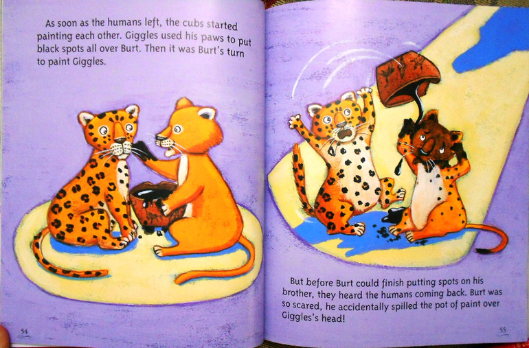 The Big Brown Bear. О глупом медведе, не послушавшемся свою жену (это надо папам для чтения подсовывать) и залезшего в улей за мёдом. Как и следовало ожидать, пчёлам это не понравилось. Медведь потом полкниги ходит с распухшим носом. А жена, к слову сказать, оказалась очень умной медведицей))