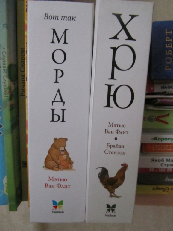 Безусловными хитами месяца стали "Где обедал воробей?" и " Идём ловить медведя", в одной очень страшный крокодил ,а в другой медведь )) Ну и ещё бессменными хитами вот уже какой месяц были книги Ван Флита "Вот так морды!" и "Хрю".