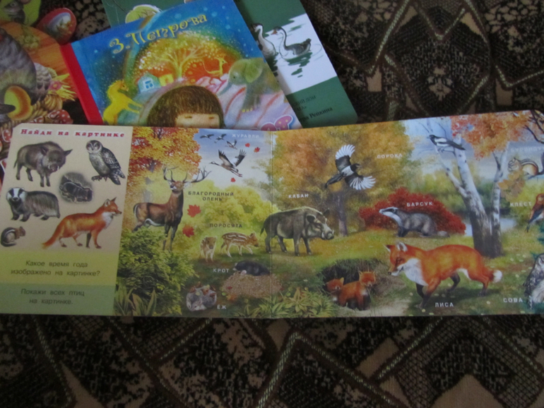 В Лесных жителях кстати показана жизнь животных по временам года, вот разворот с осенью