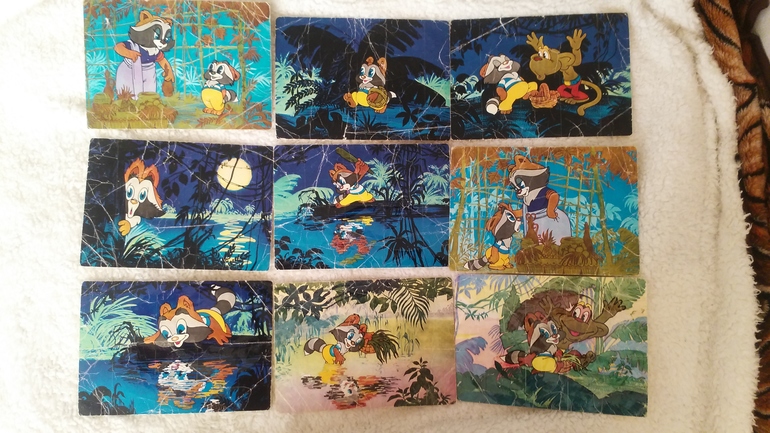 Да, это тот самый крошка енот из мультфильма! Да еще в таком необычном исполнении. Заинтересует и больших и маленьких (как и вышло у нашего семейства). Дочка всего смысла истории не понимает, но раскладывать карточки с моими комментариями любит.