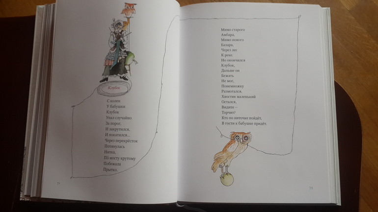- Читай. Ой, покажи. Смотри, вот ниточка, тык-тык-тык, ой, какая сова смешная (смеется)