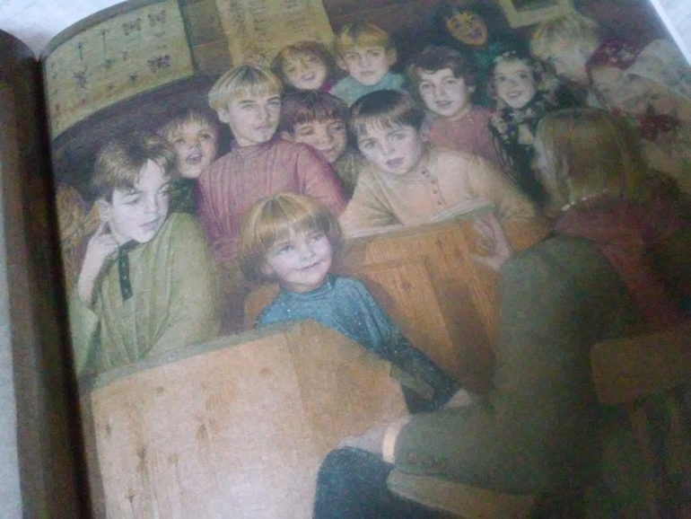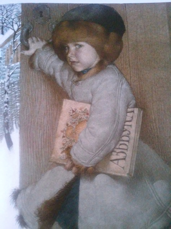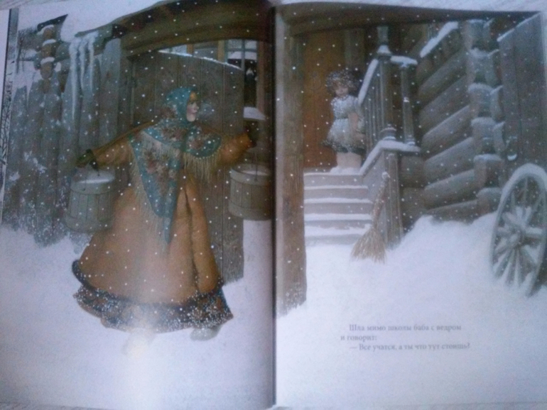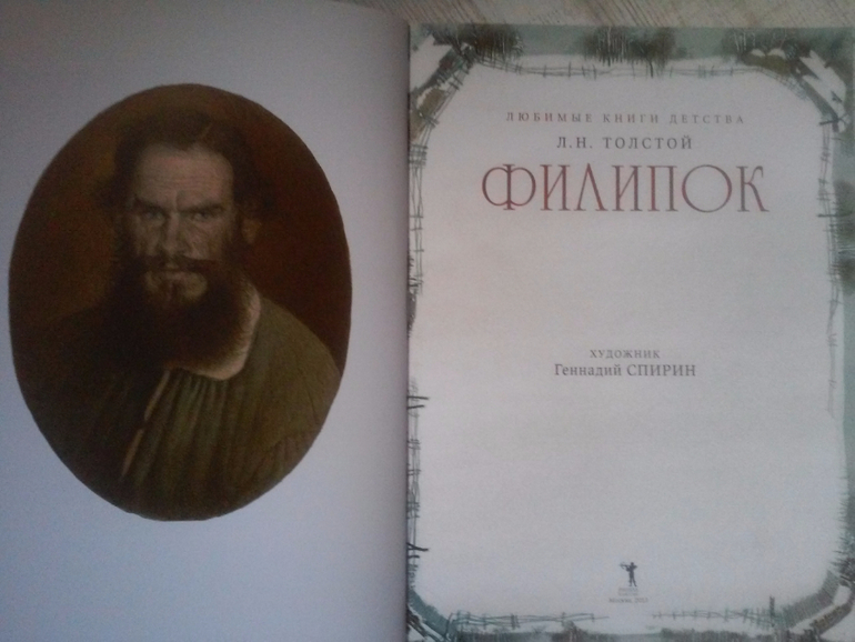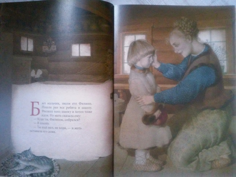 Если раньше школа Раду не интересовала вообще, то сейчас она постоянно играет в школу, представляет себя ученицей и я ей на этом фоне предложила прочитать про Филипка. Слушала с удовольствием, иллюстрации Спирина чутко передают атмосферу произведения Льва Николаевича Толстого. Рада так же как Филипок знает немножко букв и уже пытается находить знакомые в тексте книг и вывесок. Столько радости у неё было, когда мальчику разрешили ходить в школу, очень переживала встречу с собакой и учителем :).