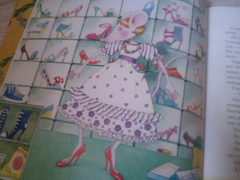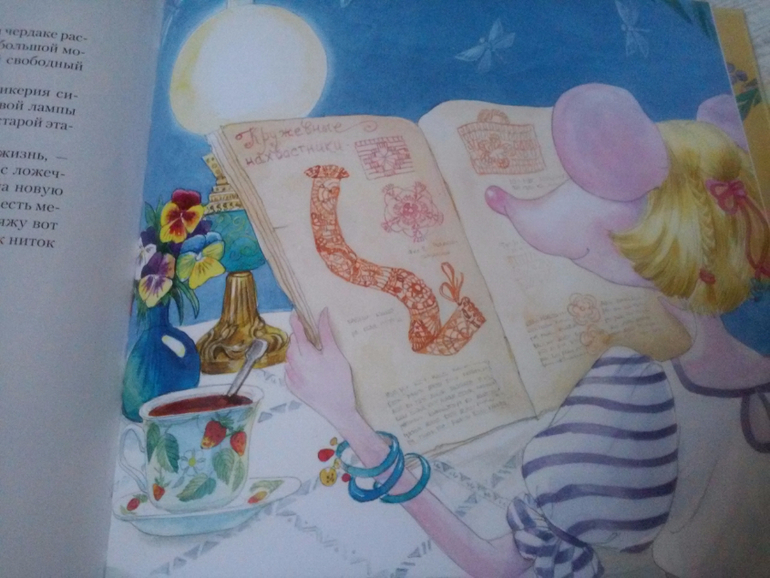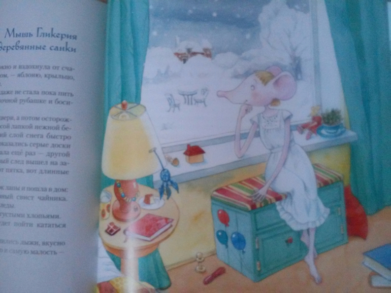 Однажды неожиданно для меня, Рада принесла Цветно-полосатую книгу, которая стояла на полочке за закрытыми дверцами на вырост, в сентябре оттуда пропала книга "Орден жёлтого дятла" :). Итак, "Гликерия" противоречивая и не однозначная на мой взгляд мышь. Наверное про таких говорят семь пятниц на неделе, просто живёт в своё удовольствие легко и мечтательно. Есть у неё какие-то знакомые на заднем плане, но чаще она разговаривает с собой или с неодушевлёнными героями: лыжами, сырным духом или огурцами, например. Иллюстрации разглядывать одно удовольствие и они точно совпадают с текстом, для ребёнка это очень важно! Ещё очень интересные герои в иллюстрациях, божьи коровки они сопровождают Гликерию везде, наблюдать за их проказами весело. Доченька огорчилась, когда закончилась книга, так ей хотелось посмотреть на вязанные кружевные нахвостники... И нам захотелось чего то странного и необычного, пошли пить чай в подстаканниках с вареньем из винограда. На следующий день налили в термос молоко прихватили маковый рулет и пошли на улицу за новым вдохновением ;) Книга девичья не однозначная, рекомендовать не буду :)