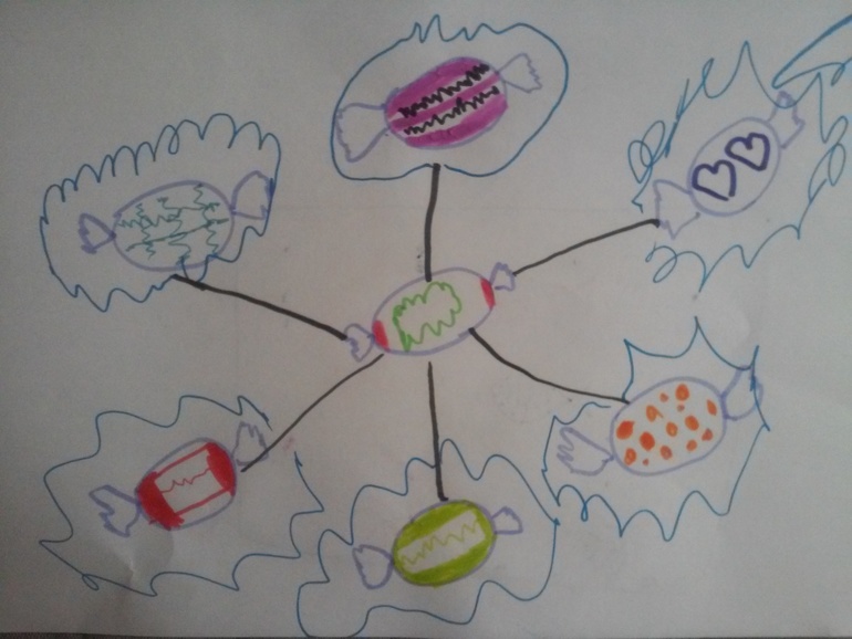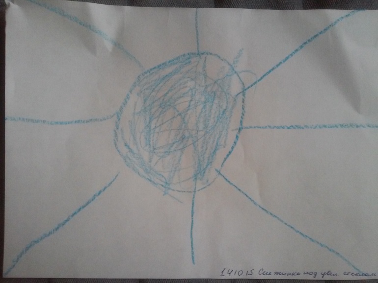 Долго мы гадали, что это, и синее солнце и новый узор, а оказалась снежинка под увеличительным стеклом :)
