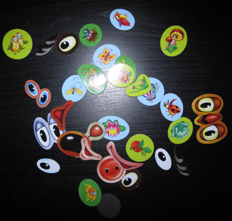 Вся соль книги вот в этих пустых мордочках - на которых надо примагнитить рожицы... и примагнитить правильно))