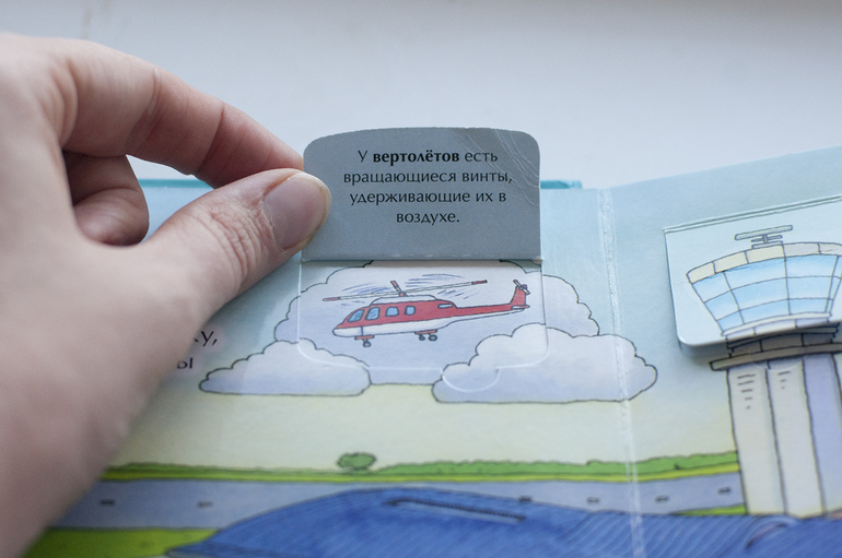 В-третьих, это окошки. Как же интересно их открывать, даже, если точно знаешь что там! Каждый раз видеть, как радуется ребенок, когда на вопрос: «А что за облаками?», он отгибает окошко и тычет пальчиком в вертолет.