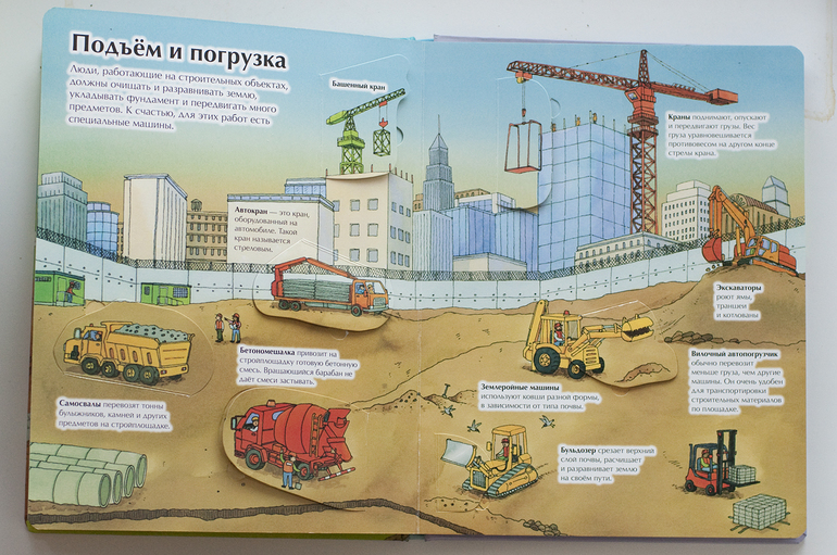 Во-вторых, да, это виммель, а их преданно и нежно любит вся семья. Причем виммель именно для малышей простой и понятный, здесь нет обилия сюжетов, ситуаций и людей, но книга и не о людях, она о технике, а ее тут много.