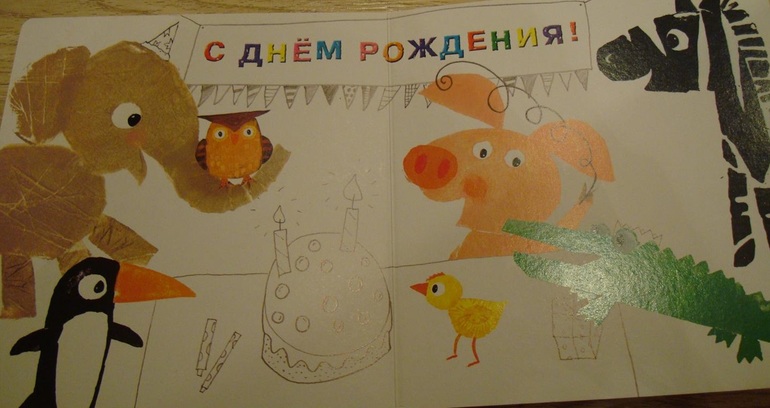 А на последнем развороте узнаем, что имениннику, к которому так спешили приглашенные, исполняется два года!