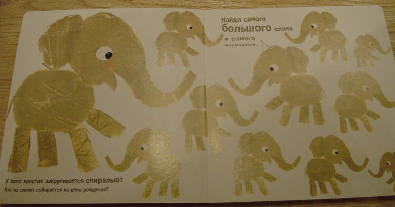 А вот очень рекомендую к приобретению книжки-«находилки». На русском языке есть две книги: «Кто где?» и «Большие и маленькие»