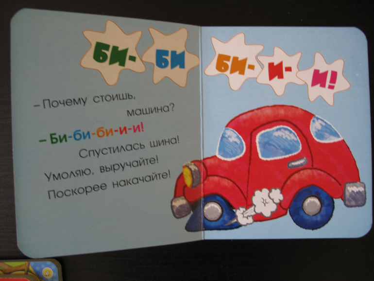 На данный момент -эта книга фаворит у нас в семье, наравне с ОГГ (очень голодной гусеницей), живет она на полу - сын периодически подползает к ней - листает, уползает.