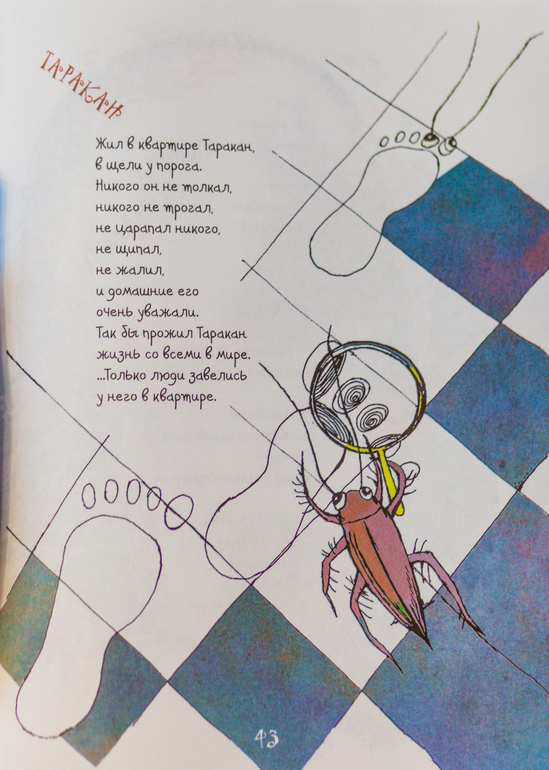 В Уже этот же стих занимает целых три разворота. И, по своему обыкновению, ярко, детально и озорно. Я все три добавлять не буду, пусть будет мой любимый вполне-ещё человек :)