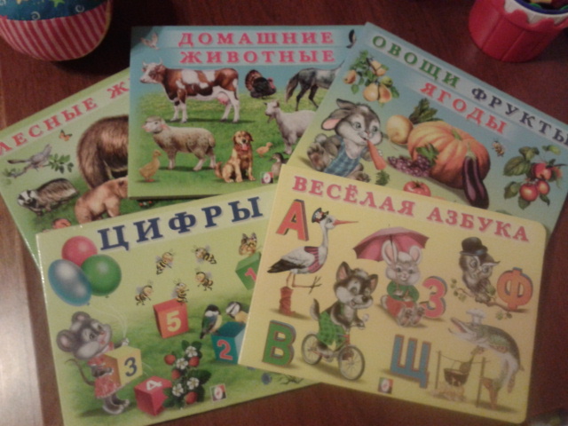Хвастик (показываем книжные покупки)Вот уж не ожидала, что в Ашане такой выбор детских книг. Случайно забрела я в книжные полки и в итоге прикупила несколько книг издательства Фламинго из серии Учим малыша. Итак, у нас в коллекции Овощи и фрукты, Домашние животные, Лесные жители, Веселая азбука, Цифры. Стоят они как-то очень бюджетно (точно не помню), но при этом неплохого качества, страницы плотные и печать хорошая, картинки понятные (животные похожи сами на себя=)). В каждой книге свои задания из разряда "найди-покажи", "что какого цвета", "кто что есть" и тп. Ребенку интересно. Особенно цифры полюбились.