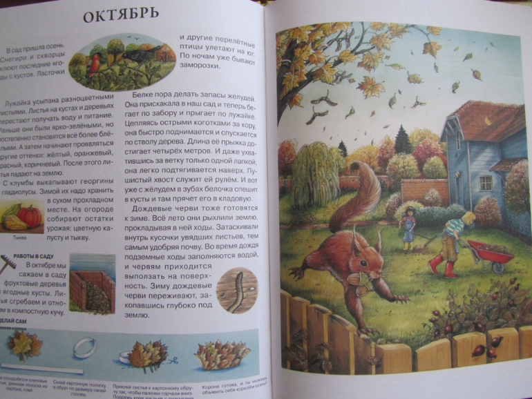 Плюсом книги также являются вот такие рубрики для каждого месяца "сделай сам". Очень интересные идеи, нам с дочкой например, очень понравилась корона из листьев, предлагаемая в октябре ( у нас как раз сейчас время листопада).