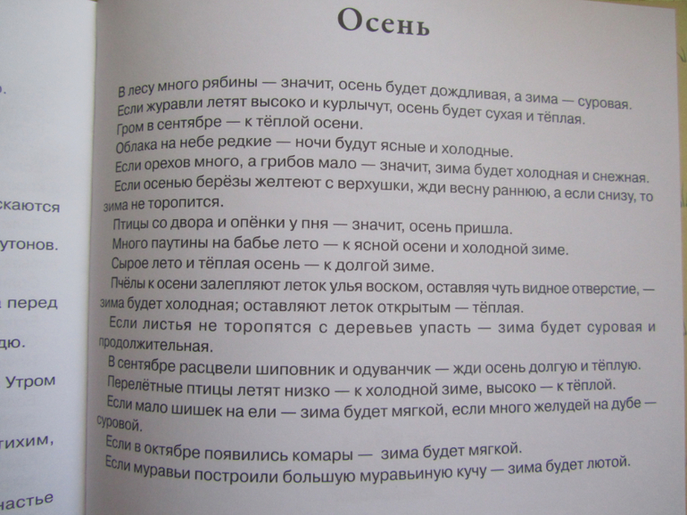 Ну и в конце даны народные приметы на каждый сезон года, вот например, на осень ( они же повторяются и в книге "Год в лесу" этого же автора)