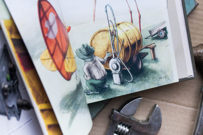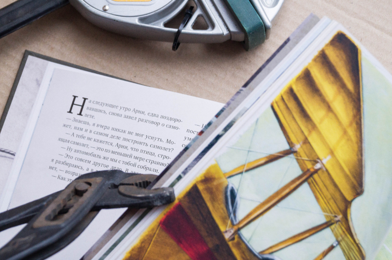 И вот мы собрали семейный совет и думали, на какую же всё-таки аудиторию рассчитаны книги. И, в конце концов, решили, что они мультиориентированные. Не для кого, но для всех. Маркетинг, авторский приём, да какая в общем-то разница. И это подтверждает реакция всей семьи. Коля: мм, грамотно, аэродинамика, лонжероны-шмонжероны. Оля: ой, странички в пятнах, тонировка, винтажности, гладить обложку. Алиска: самолётики, вжж, круто, машинки, ездить-летать! смотри! колесо, крыло, винтики-шпунтики, о, мышь!
