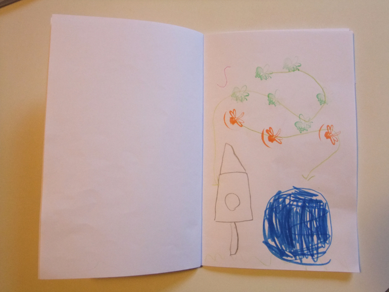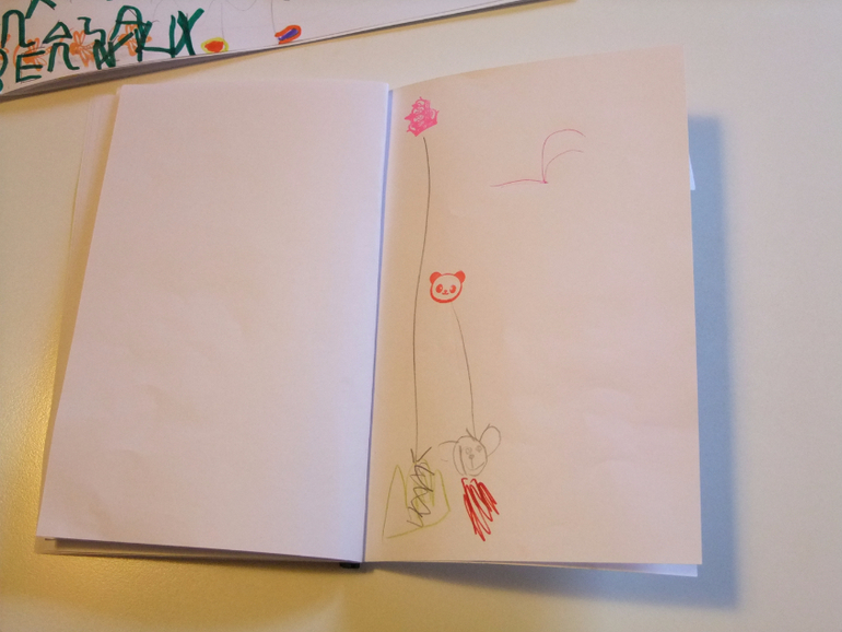 "Мама, я сегодня сочинила сказку, послушай! Жила-была добрая лисичка, она всем раздавала мороженное: ёжикам, зайчикам, медведям. И угостила енота, а он стал его как обычно в реке полоскать. Представляешь, мороженное смылось и он расстроился! Оказывается не всю еду надо мыть :)))). Давай сделаем сами книгу про эту сказку, я картинки нарисую!"