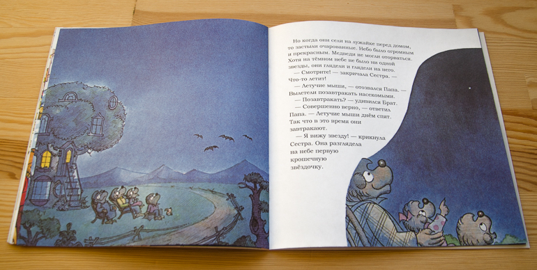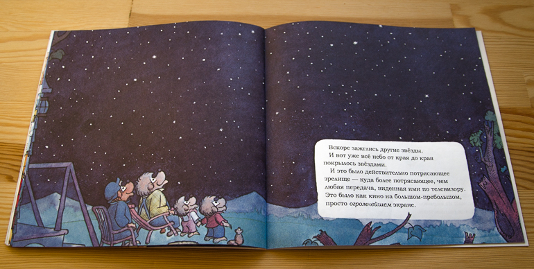 А вечером мама предлагает вместо телевизора посмотреть на звездное небо. У медвежат эта идея не вызывает никакого энтузиазма. "Не думаю, что это будет захватывающее зрелище", - с сарказмом заявляет Брат. Но он ошибается!