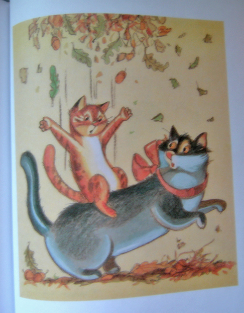 Так что без оранжевых котов всех видов и иллюстраций Борисa Тржемецкoго у которого очаровательные коты и восхитительная солнечная гамма цветов, переходящая от желтовато-лимонного к апельсинному и кофейновато-рыжевато бурому опавших листьев, мы никак не обойдемся!