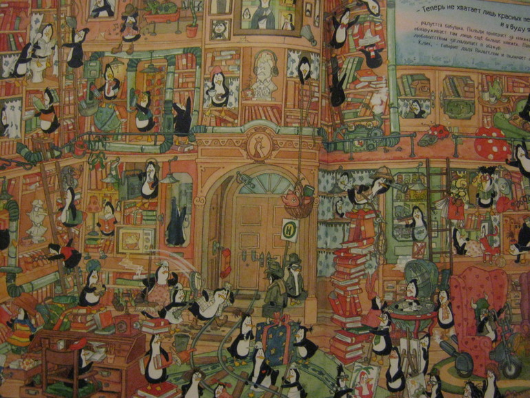 Без пингвинов, конечно, но стопки книг громоздились везде, где только можно.