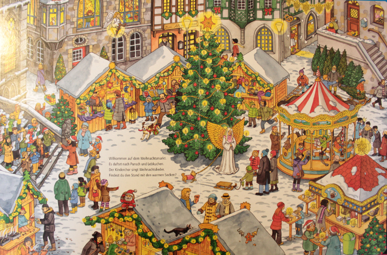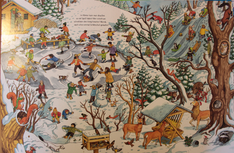 А в этом виммельбухе представлены иллюстрации разных художников. Одни развороты мне нравятся больше, другие меньше, но выбрать есть из чего, в книге их 11!