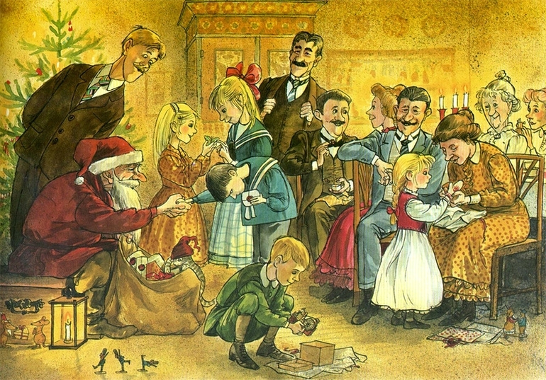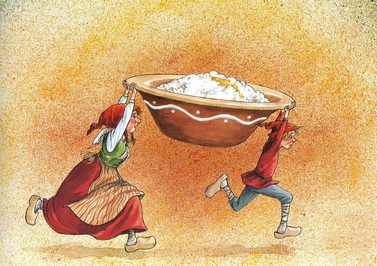 Сама же сказка точно с новогодним ароматом, и каши в том числе. Рассказывает о традиции варить под Рождество кашу и угощать ей домовых.