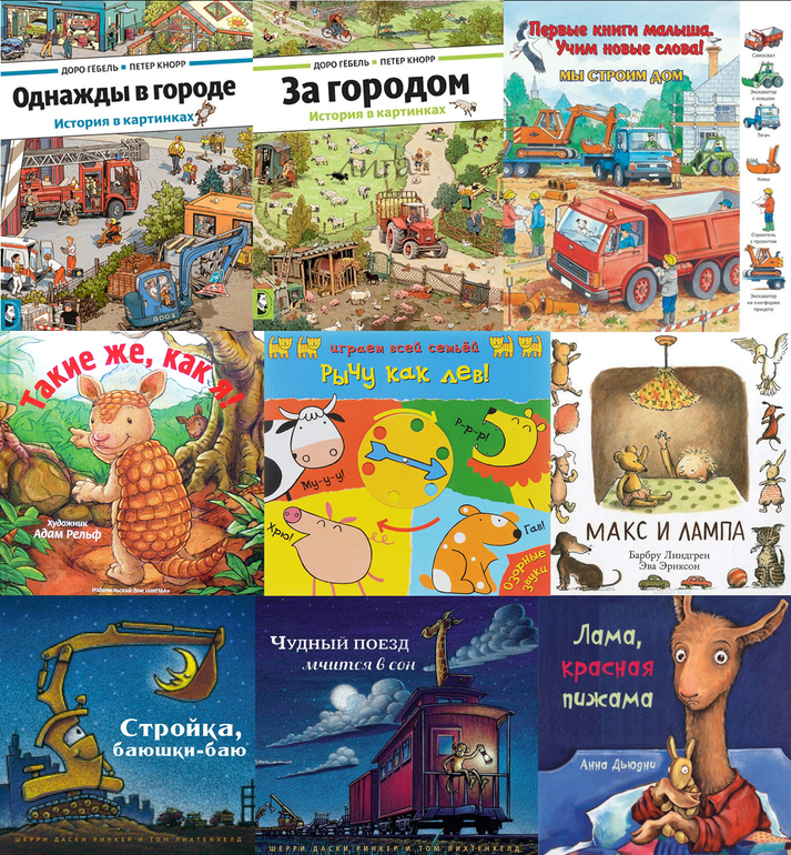 «Читаемые» любимчики. Сын не очень любит слушать чтение, но против этих книг ничего не имеет. Я читаю вслух, а он просто занимается своими делами, не пытается вырвать книгу из рук и выбросить прочь. Наоборот, периодически подбегает, смотрит картинки.