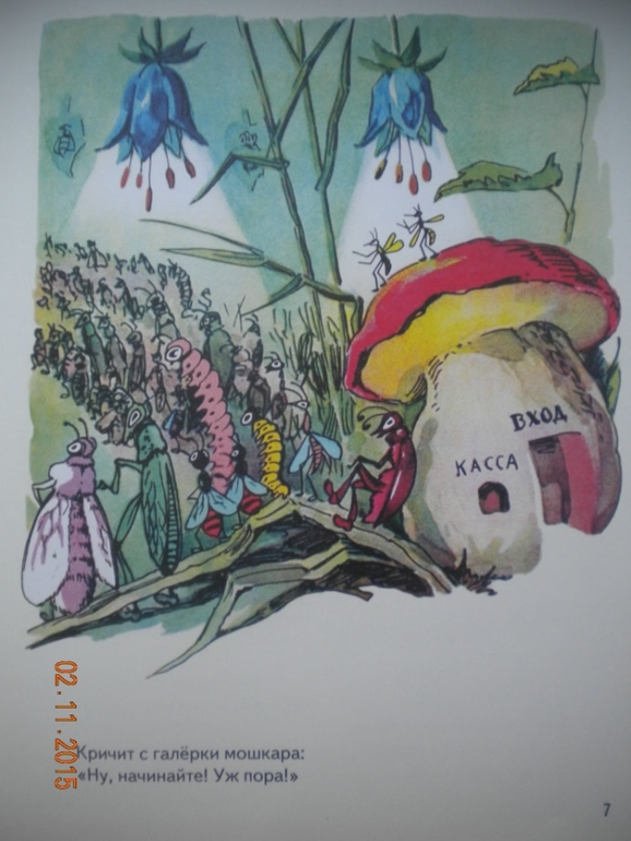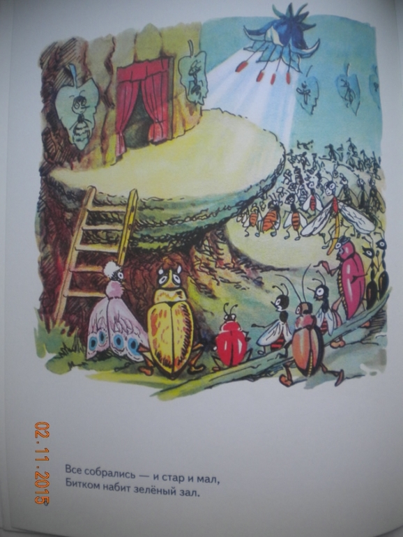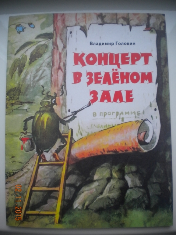 2. На втором месте тоненькая книжечка Владимира Головина "Концерт в зеленом зале". В первый день доче перечитывали ее 7 раз - до того она ей понравилась. Сейчас она знает ее почти всю наизусть. Наша девочка вообще любительница всех насекомых: все лето собирала в ведерко божьих коровок, солдатиков, мохнатых гусениц, улиток и тооооолстых дождевых червей. Обожает и "Муху-цокотуху" и знает ее наизусть.