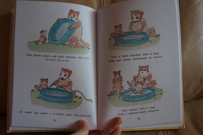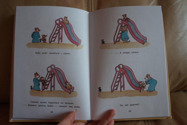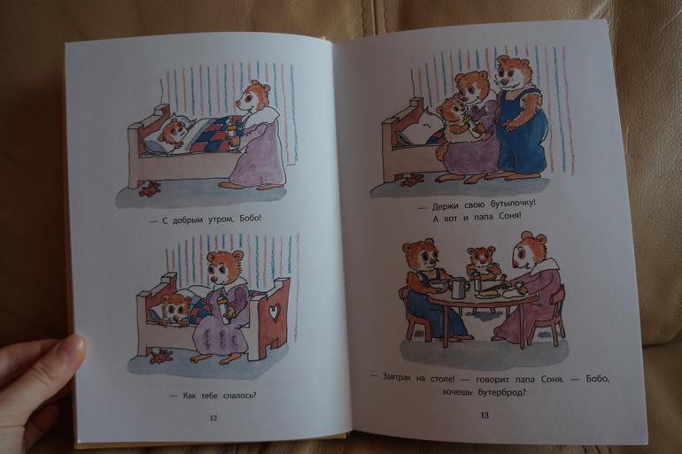 Эта книга состоит из небольших рассказов о малыше Бобо из семейства сонь. Иллюстрации на первый взгляд кажутся страшноватыми, но дочка от них в полном восторге. И сами рассказы написаны в такой форме, которая легко воспринимается малышами. Читаем книгу каждый день и помногу раз, я, если честно, даже прячу ее иногда, так она мне надоела)