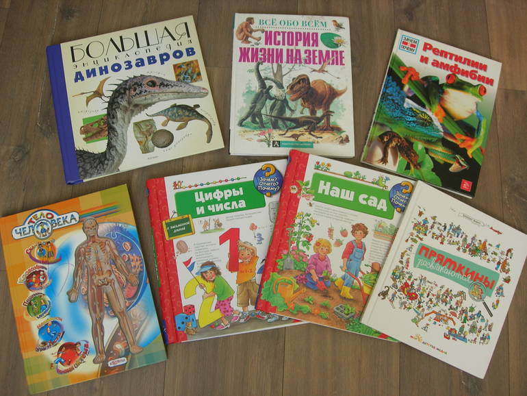 Мальчишки заинтересовались динозаврами. Особенно Сашка, каждый день рассматривает "Большую энциклопедию динозавров", учит матчасть названия))) Вовке больше понравилась книга о происхождении жизни на земле. "Пряткиных" Вовка посматривает. А книги с окошками нравятся Саше, не расстается с ними.