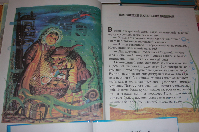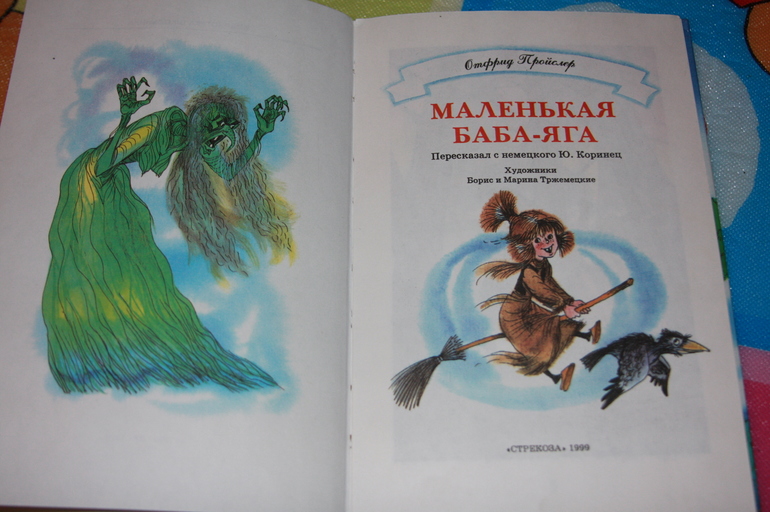 Пройслер. аж три штуки!!! У нас был свой старенький "Водяной" с рис.Кабакова, а я все хотела дочке про Бабу-ягу. Но мне не нравятся иллюстрации во всех книгах, что нынче есть в продаже. По сюжету бабе-яге хоть и за сотню, но она ж задорная девчонка, а не бабка и не тетка. Наконец нашлась баба-яга, максимально похожая на нужную. Насколько я понимаю, здесь не полная версия, а пересказ. Это немножко грустно, но книга предназначена на такой возраст, когда картинки важны, но не первостепенны. Поэтому образ пусть будет такой, а прочитать полную версию можно будет потом хоть вообще без картинок.
