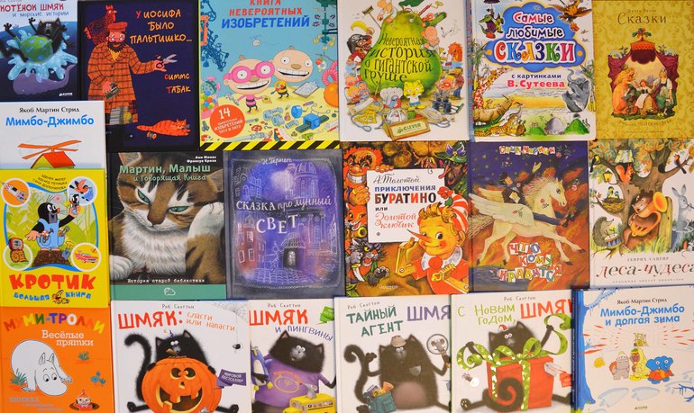 Мимбо- джимбо... просит на новый год остальные книги (так как на обложке они все нарисованы). Эти книги как переход от простого к сложному. Самая простая Мимбо-джимбо, сложнее - про зиму, самая сложная - про грушу. Интерес именно по этому алгоритму и проявлялся. Увлекательным занятием является поиск одинаковых персонажей, например ученого из долгой зимы, можно найти в груше. Или, на портрете в домике мимбо джимбо изображен Себастьян, а в кроватке с Себастьяном - игрушка Мимбо-джимбо)))