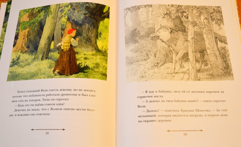 Из сказок Перро любит только красную шапочку, читаем ее только здесь уже очень давно, в этот раз правда прочла всю книгу для двоих, но оба ровно.