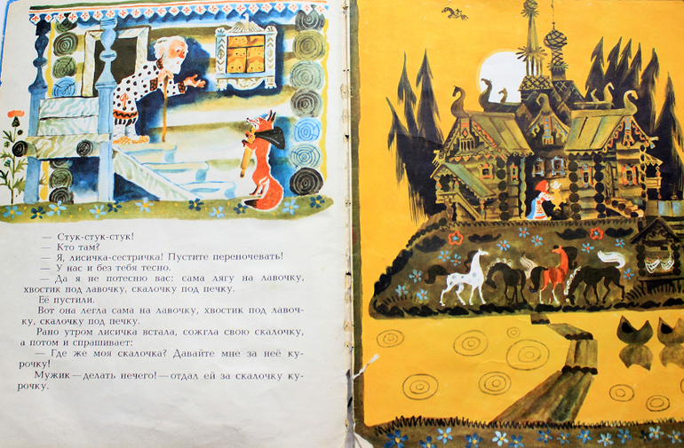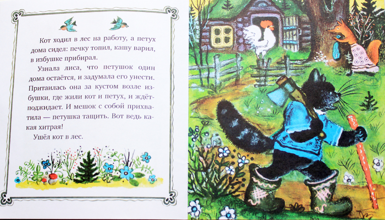 Речь в этом году переиздала эту книжку, но я менять нашу я не стала и оставила букинистический вариант. А если бы и меняла то на издание с рисунками Васнецова. Для меня самой в детстве это была одна из самых непонятных сказок. Ну не понимала я всех этих гусочек, скалочек и хвостик под лавочку! И рисунуки Елисеева нисколько не помогали не в моем понимании, а только еще больше запутывали. А иллюстрации Васнецова мне кажутся более понятными что-ли.