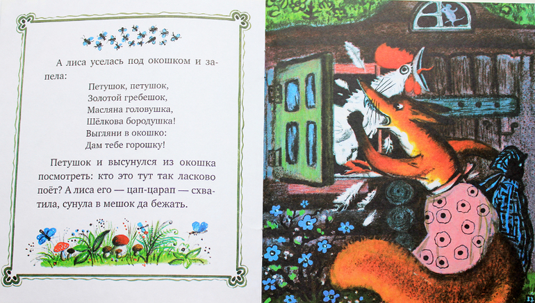 Не скажу что сказка стала любимой, но иногда ее читаем. Конец сказки я видоизменяю, так как дочка уж очень сильно за петушка переживает. Книжку безусловно будем читать еще не один год, находя в ней все новый и новый смысл.