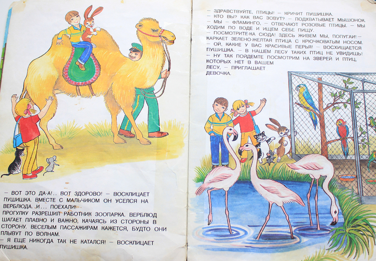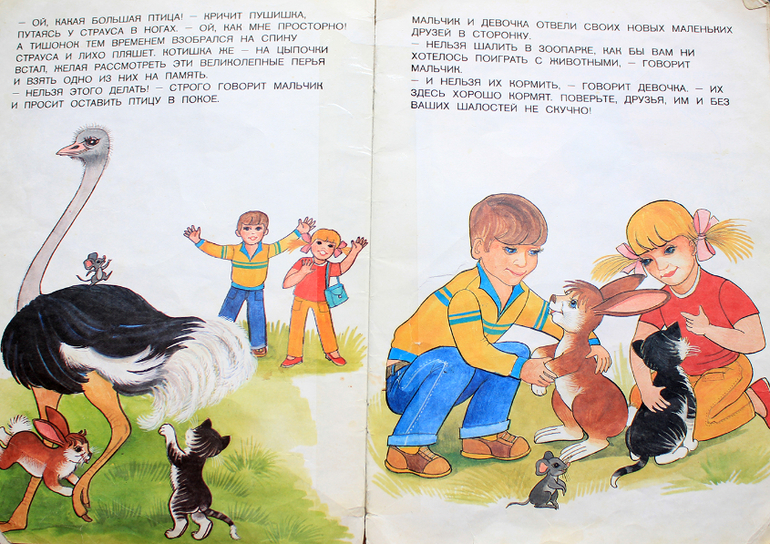 Сама история очень простая как зайчик, котенок и мышонок встретили у входа в зоопарк мальчика и девочку и пошли вместе с ними на экскурсию. Но я точно помню что какими-то волшебными мне казались эти мальчик и девочка.