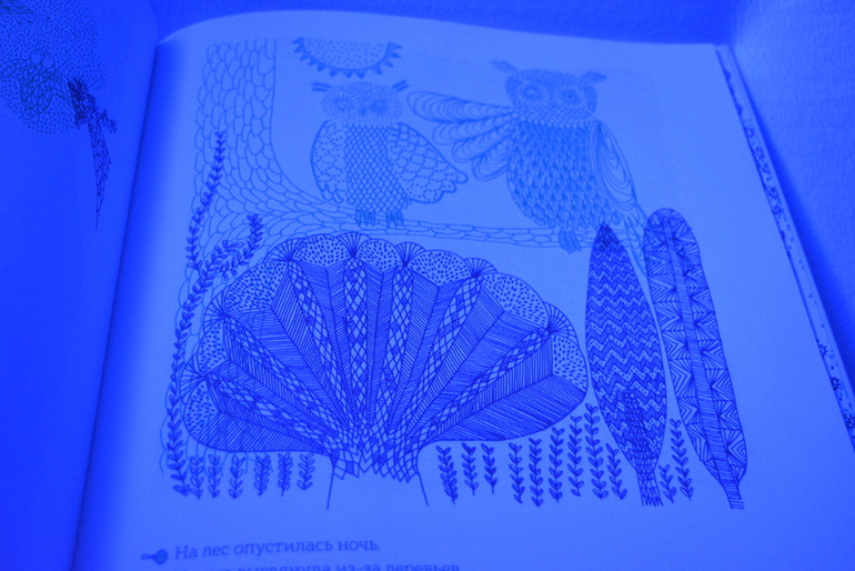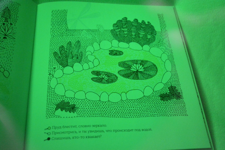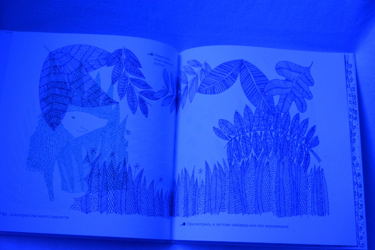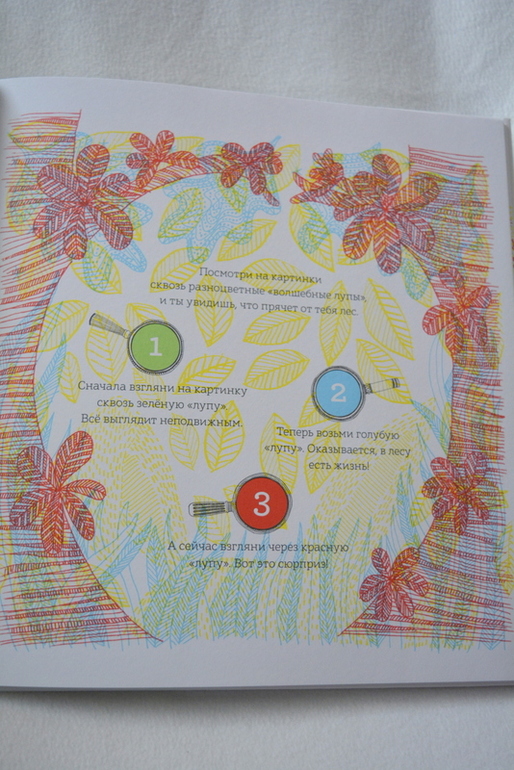 На каждом развороте иллюстрация с пояснением, что можно увидеть на картинке используя ту или иную лупу.