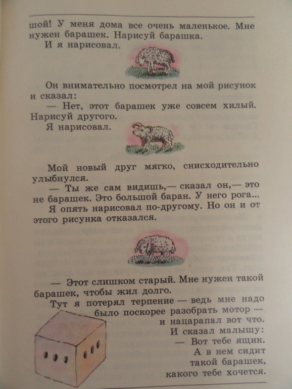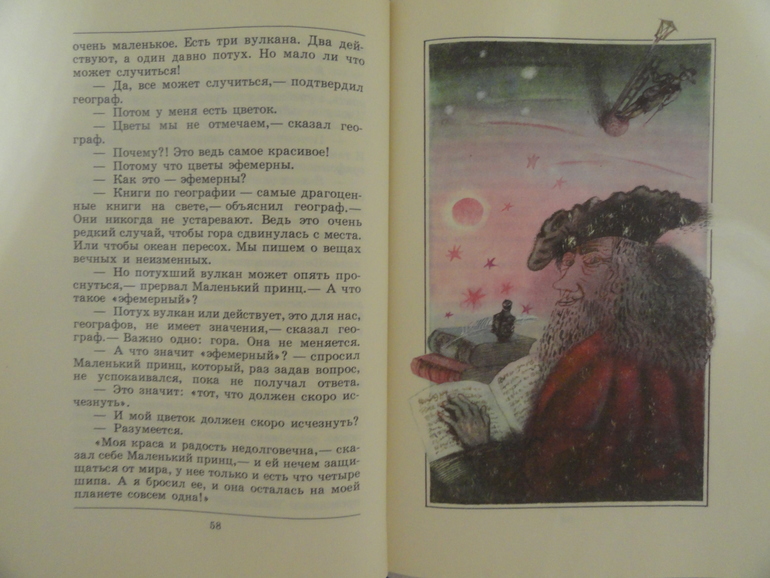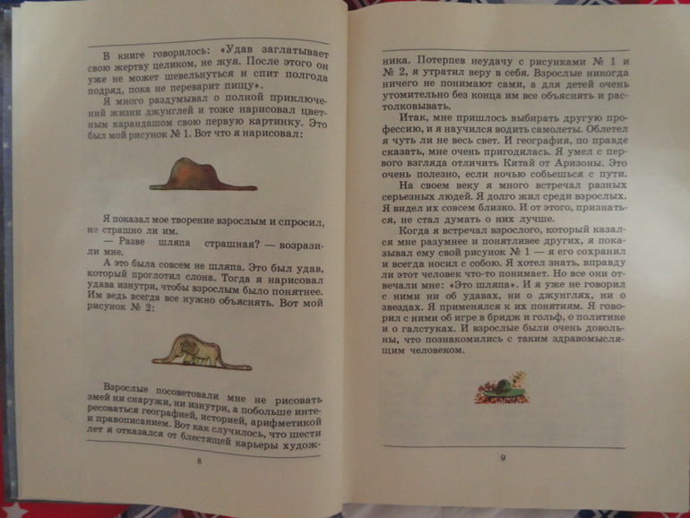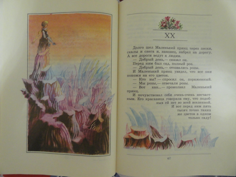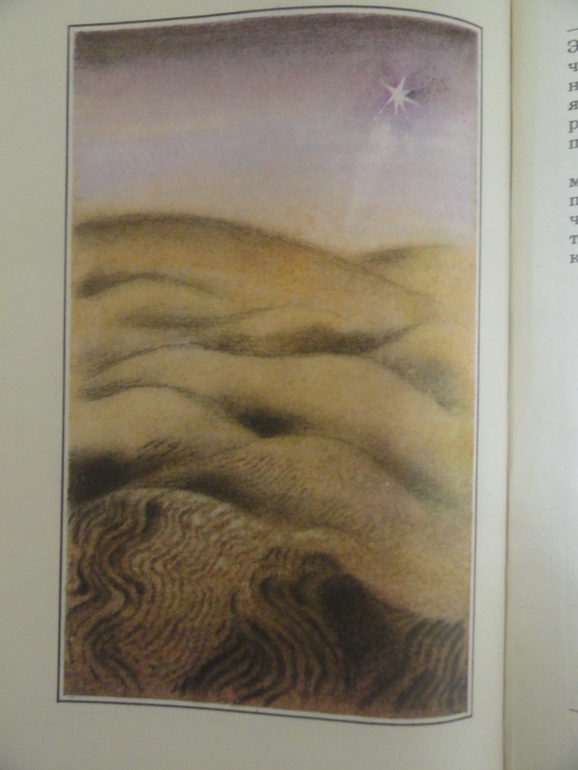 Рисунки самого автора не люблю, с ними не могу читать эту книгу, а вот такой вариант читается на одном дыхании. В этой книге всё гармонично для меня-формат, шрифт, иллюстрации. Вот такой живёт на наших полках Маленький принц)).