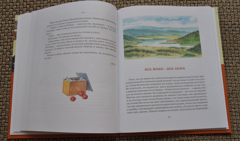 В книге есть еще два произведения автора - Мама куда-то ушла и Век живи-век люби, а также статья об авторе. Сын их не читал, а я прочла. Век живи-век люби понравилось, философское такое произведение, но в то же время жизненное. И иллюстрации хорошие, на мой взгляд (в книге иллюстрации двоих художников). Но для сына все-таки его рано читать, пожалуй - история о пятнадцатилетнем подростке, много размышлений.