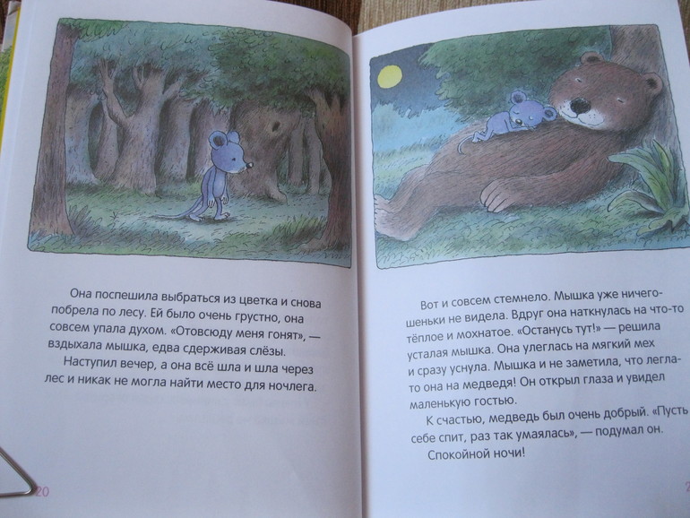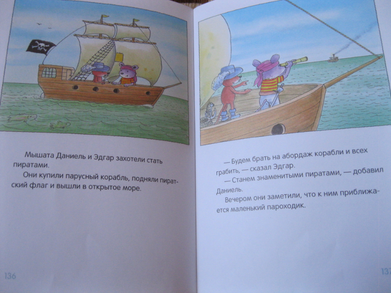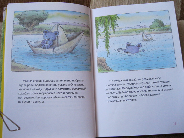 Мозера я так ждала, что достала первым. И понеслось... Про мышку читали не меньше 3 раз в день (сначала половину книги, и еще рассказик, и еще...). Очень добрая, фантазийная книга. Можно каждый рассказ превращать в полноценную игру. Я думаю, что в нашем доме скоро появятся летающие ящики, тыквенные кораблики, ракеты и пиратские корабли. Очень много для нас новых тем и понятий (во второй половине книги), но всё написано так просто и интересно, что 2-летнему малышу было почти всё понятно. Но прелесть этой книги в том, что она будет интересна и в 2, и в 4, и даже, мне кажется, подойдет для первого самостоятельного чтения (крупный шрифт, короткие предложения, интересные сюжеты). Мы полюбили ее всю: от содержания (которое оформлено в виде картинок, ребенок важно самостоятельно его "читал") до портрета автора (вот люблю, когда в книгах есть портрет автора, а вы?).