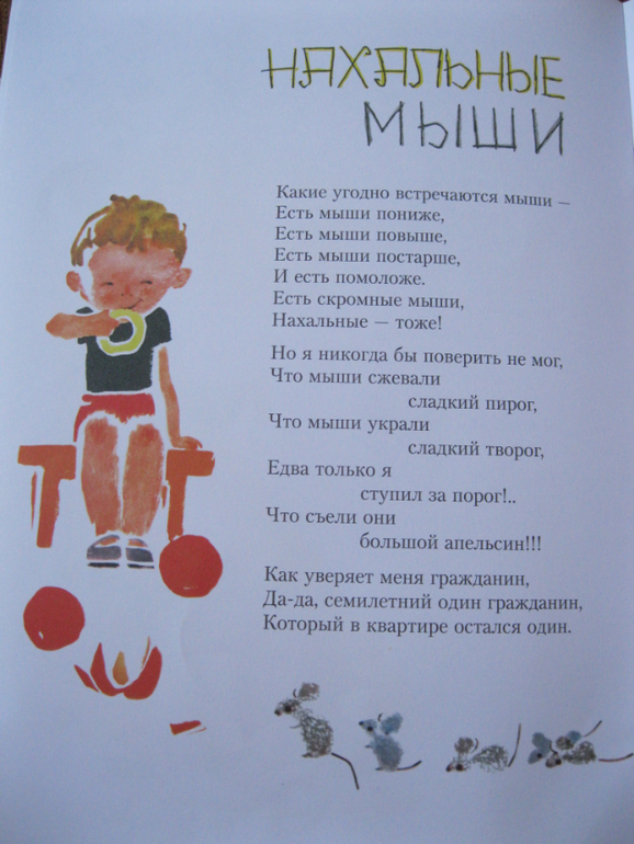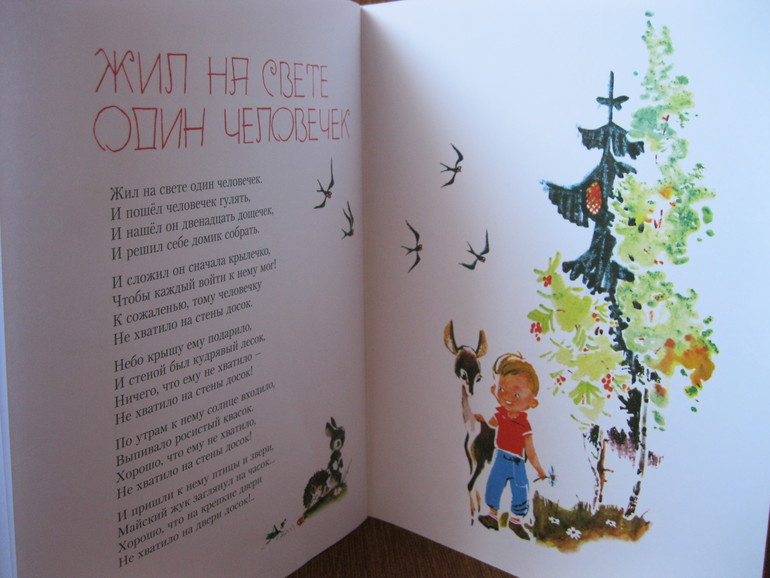 И вообще чрезвычайно правильно она начинается - с паровозика) А если серьезно, то очень наполненный сборник получился: динамичное "Прыгаю через ручей", ироничное "Нахальные мыши", позитивное "Люблю когда утро", мальчишечье "Паровозик", творческое "Я рисую", доброе "Жалко маму", озорное "Пряники из грязи"... Но больше всего понравилось и мне и ребенку (продолжает рассказывать и спустя 2 месяца) стихотворение "Жил на свете один человечек", очень душевное, советую к прочтению, особенно взрослым.