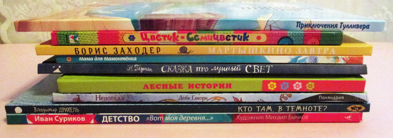 Сказка про лунный свет очень нравится мне и Агатке, Непогода уже как почти год в любимках. Детство рекомендую всем и в любом возрасте. Цветик - семицветик и Дудочку с кувшинчиком читали очень много раз, хит!